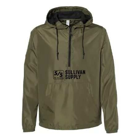 Stay dry while looking cool in this army green quarter zip pullover with pocket.