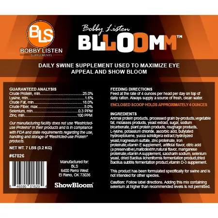 This amazing product is blended with Show Bloom and other technologies to increase Skin and hair enhancements as well as overall bloomed appearance of the animal. BLLOOMM is also approved for multi species which is much different from products before it. 25lb bucket with screw top lid.