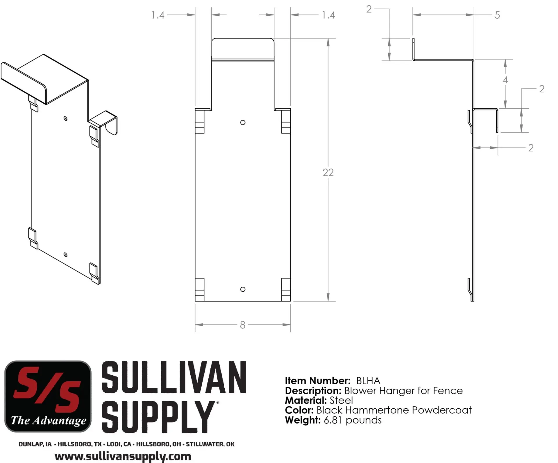 Hang your blower from a fence, a trailer, or many other places. Works excellent to get the blower up off the ground, and out of the way. The blower hose easily wraps around the top of the hanger.