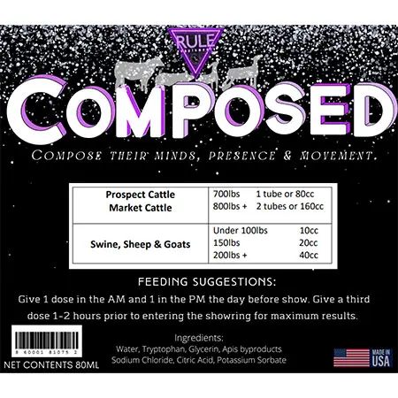 This paste addresses the anxiety and stress that restricts an animal’s ability to comfortably present themselves. It will help compose their mind and relax their skeleton, increasing flexibility. Give one dose in the morning, a 2nd dose the evening before the show/live sale. For best results, give a 3rd dose 1 to 2 hours prior to entering the show ring.