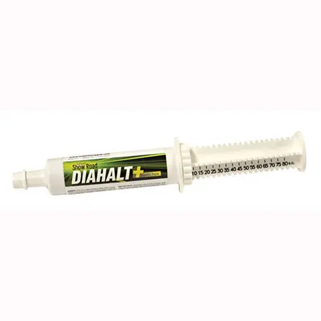 When cattle get stressed from a change in location or change in feed it can cause them to have irregular digestion and thus diarrhea. This all natural anti-scour paste contains high levels of Koalin and Pectin as well as 2.5 billion CFU (colony forming units) of Enterococcus faecium an important probiotic microorganism that is beneficial to digestion and rumen action. Show Road DiaHalt is especially useful for younger cattle that are being shown for the first time. FOR BEEF CATTLE ONLY. Administer at a rate of 5cc per 150 lbs. of body weight.