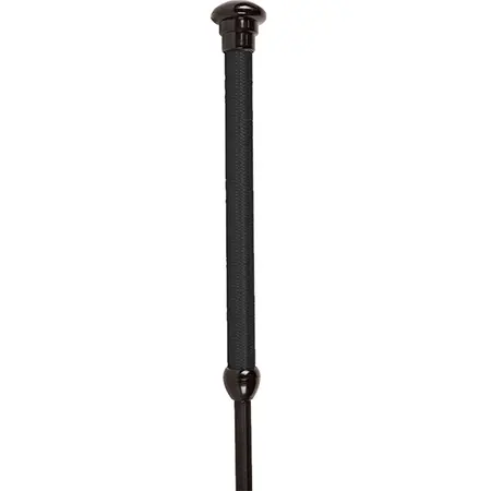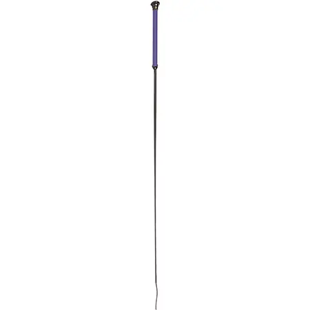 The Driver Whip features a medium flex fiberglass core shaft that is wrapped in a black nylon weave material. The 5“ long lash/popper is very flexible. This ultra-responsive lash is also strong with its reinforced braided-in nylon construction. The hinge joint that connects the lash to the shaft is reinforced with a hidden brass cuff for added durability. The hand grip is covered in a threaded-braid nylon weave material that is available in black, blue, purple, or teal color. The hardware at the end of the handle features a durable molded black plastic ball tip. Available in 33” or 36” length sizes. The Driver Whip is a tremendous multi-purpose whip. Its firm feel is great for training at home while also having a mid-flex shaft and very responsive popper that is super for shows.