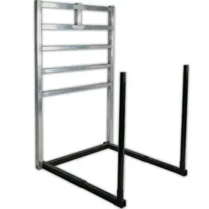 Sullivan’s Fitters Guard was designed for fitters in mind. This aluminum guard allows you to fit your animal in the stall while keeping them standing still and you protected. This easy to assemble stall fitting guard is quick to install and easy to adjust at any time. Adjustments include the width adjustments of 34” OD-44” OD length adjustments from 34” OD – 57” OD and side bar adjustments 30” – 50”. It quickly folds up for a space saving storage mode. For use only on animals that are broke and are used to being groomed. Do not use without securing it to front panels.
