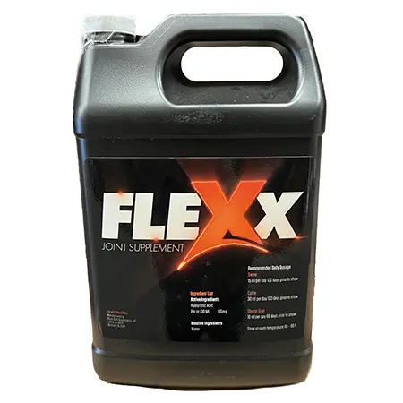 A liquid joint supplement for cattle, pigs, sheep and goats that replenishes and cushions joints. Features 195mg of pure Hyaluronic acid/oz (30ml).