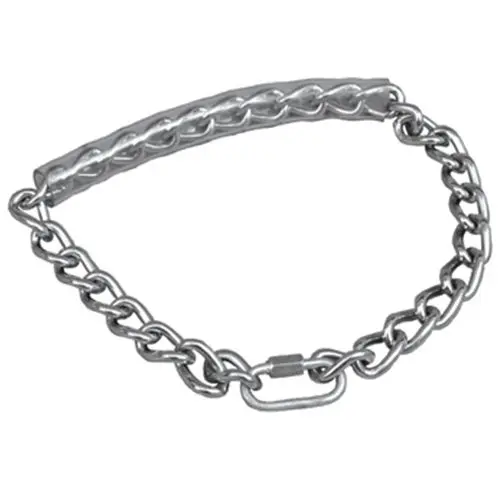This 22” chain collar is made from extra strength welded steel rings, which will not tarnish or rush from extended use on your goat.