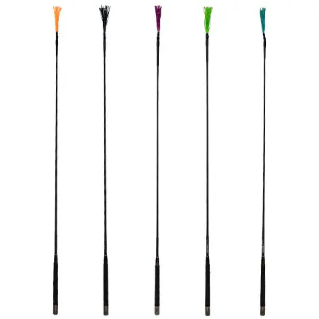 Flexible Tasseled Pig Whip Sullivan’s Heads Up Whip gets your pigs attention without leaving marks. The tassels leave the skin unflawed while driving the pig in the direction needed, resulting in the best show ring look. The Heads Up whip is equipped with a comfortable grip with a chrome tip.