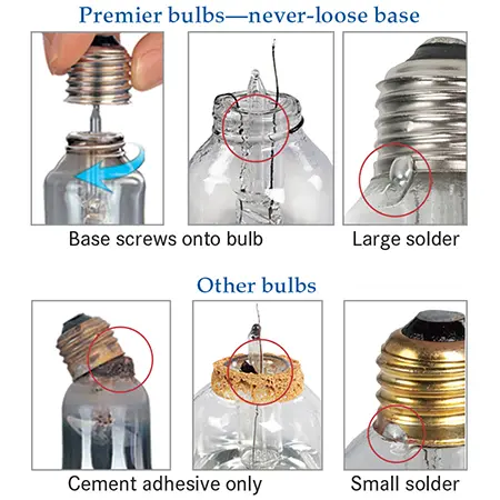 Bulbs not included. (Smooth and pressed glass bulbs feature a “never-loose” base.)