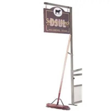 The Ranch Sign Holder is made of square tubing and will also hold your fork and scoops in place. The top tube extends out 28″allowing you to easily hang a sign that is up to 30″ wide. The height of the sign holder extends from 7’2″ to 7’6″ off of the ground and makes your sign very noticeable. Sullivan’s Breeders Display components are available in aluminum.