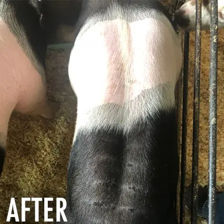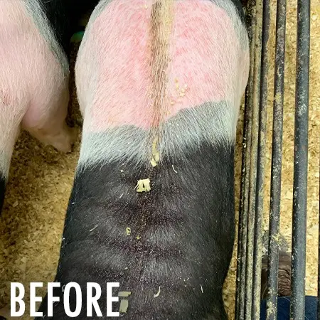 Sullivan’s Red Line is a skin healing spray for hogs. This unique product is designed to heal skin issues such a staph, rain rot, and help eliminate red marks, fungus or thrush. This antiseptic spray is an extremely effective product for general wound care and healing. Both antiseptic and soothing, this solution quickly penetrates the affected areas and goes to work. All the while offered in a convenient spray that has a fast absorption rate. Does not stain.