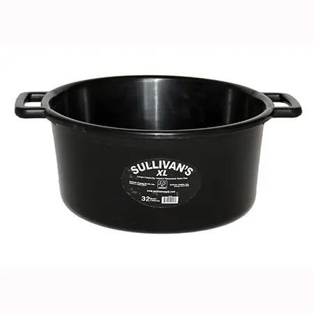 In response to the growth of feeding more filler feeds and supplements we introduce Sullivan’s SMART Feed Pan XL. It is designed to hold 45% more volume than our standard 22 quart SMART Feed Pan. XL ’s impressive 32 quart capacity will hold all the filler feeds and supplements that competitive cattle need in today’s show ring.