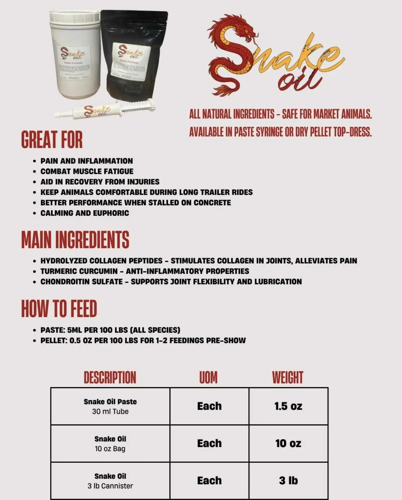All natural ingredients – safe for market animals.