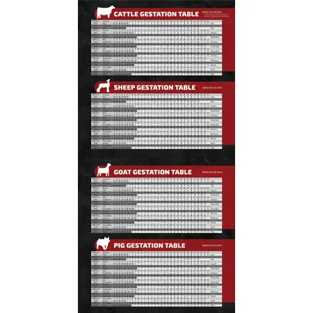 Complete 16 Month Calendar that has built in gestation tables for cattle sheep, pigs and goats.