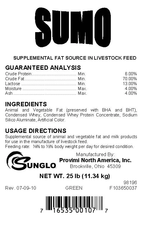 Sumo works well on both market hogs and breeding gilts that need added fat cover, improved feed consumption, and enhanced bloom. Sumo can be fed at any time at any part of the feeding phase of your pig. Sumo is highly palatable and mixes easily with either ground or pelleted feed.